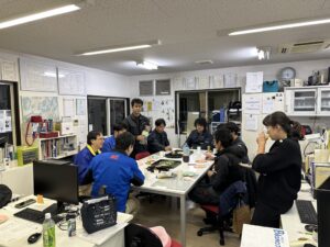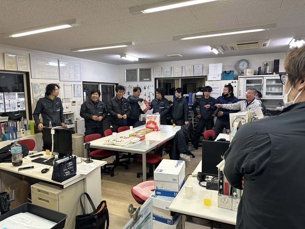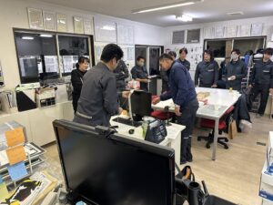 大掃除&洗車が終わり、工事担当者・配送担当者も帰社し社員が揃ったところで