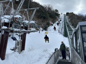 続いて訪れたのは、三方五湖を一望できる「天空テラス」。ケーブルカーやリフトを使って、山頂へ向かいます。