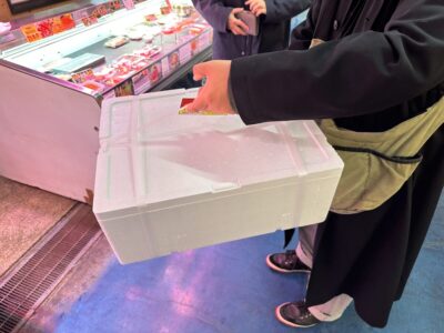 最後に訪れたのは「日本海さかな街」。福井ならではの新鮮な海産物が揃う市場で、みんな真剣にお土産を選びます。